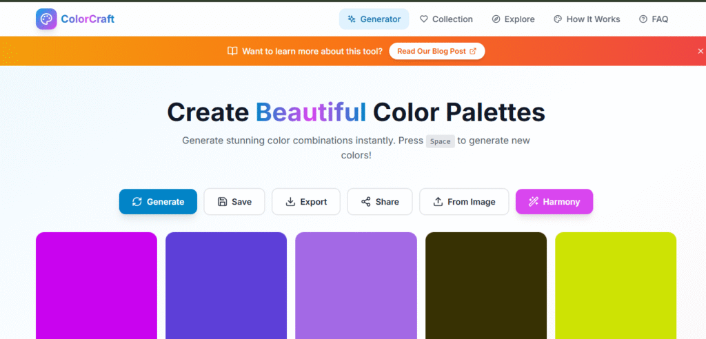 If you’re building a design website or SaaS tool, offering a Color Palette Generator can: