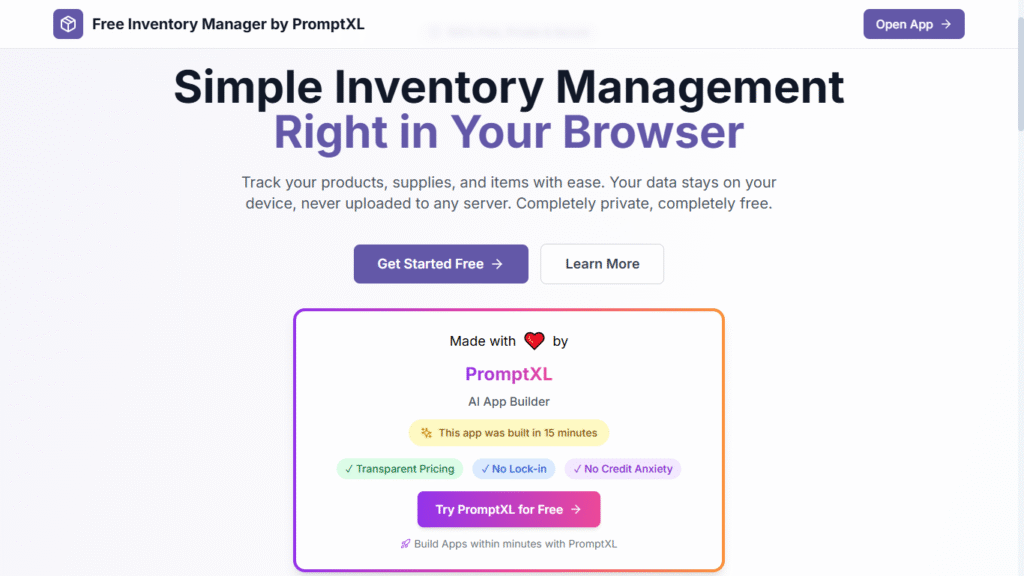 The application was built in minutes using PromptXL, yet it delivers production-grade usability and security. It demonstrates how modern AI-assisted tooling can create polished, real-world software quickly—without sacrificing quality.