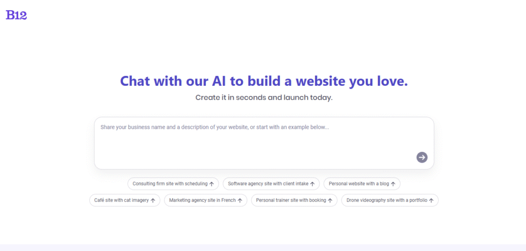 B12 is an AI-powered website builder designed primarily for small businesses and service providers who want to create professional websites quickly.