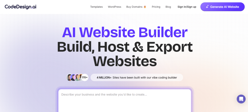 Unlike purely prompt-driven builders, CodeDesign blends AI generation with visual editing tools.