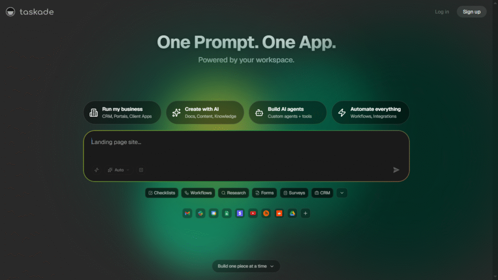 Taskade’s biggest strength is its AI-native approach, meaning AI is deeply integrated into the workspace instead of being an optional add-on. Users can train custom AI agents on their data, automate workflows, and even generate apps from prompts.