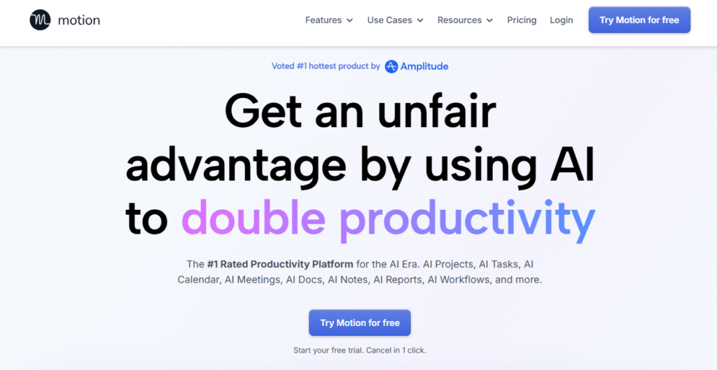 Motion is ideal for professionals focused on productivity and planning rather than building AI workflows.