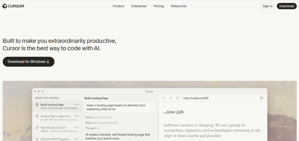 Cursor integrates AI deeply into coding workflows.